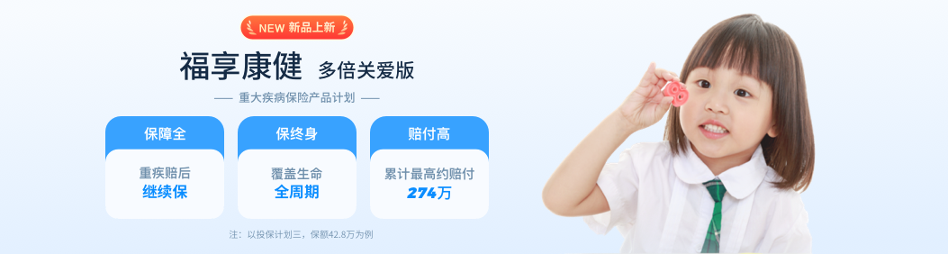 百万医疗险:儿童抵抗力不如成年人,更容易生病,百万医疗险主要是用来解决大额的住院医疗费用。如果孩子发生大病,可以对住院前后门诊急诊等费用提供相应保障。如果预算充足,还可以配备小额医疗险,这样平常的小病小痛如感冒发烧,肺炎等,也可以获得相应保障金额。