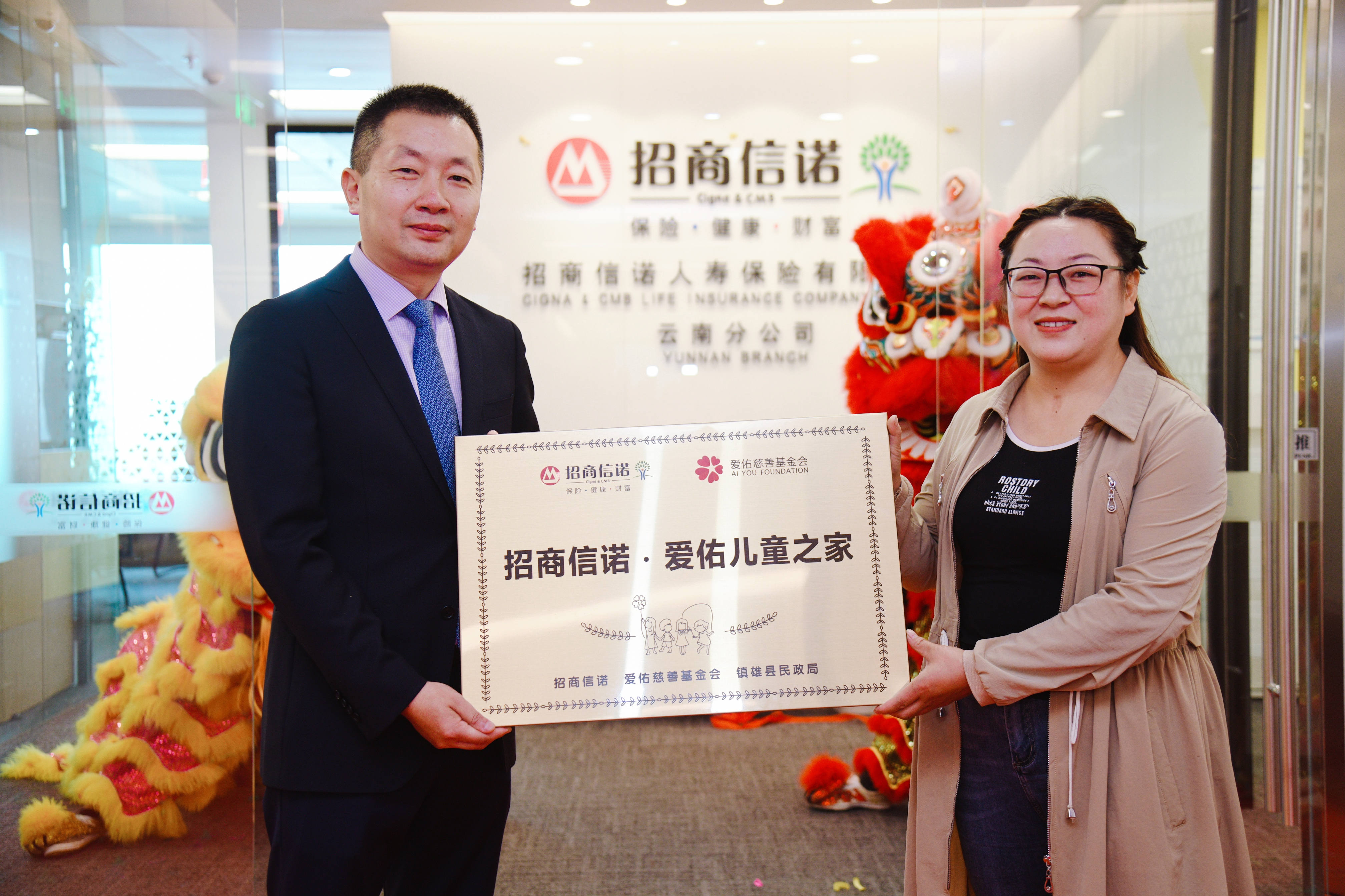 揭牌典礼当天,招商信诺人寿同时宣布与爱佑慈善基金合作在云南镇雄捐建“爱佑儿童之家”。“爱佑儿童之家”致力帮扶镇雄当地困境和留守儿童,为他们提供生长发展需要配备的娱乐、学习、办公等设施,提升他们的情感、认知、社会交往等能力,同时为他们提供基本的生活保障、医疗、教育、心理干预等方面的救助。