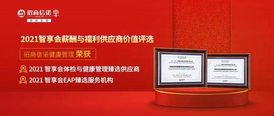 日前,由人力资源智享会(HREC)主办的“2021 智享会薪酬与福利供应商价值大奖”颁奖典礼于上海举行。招商信诺人寿保险有限公司(简称为“招商信诺人寿”)旗下招商信诺健康管理有限责任公司(简称为“招商信诺健康管理公司”)荣膺“2021 智享会体检与健康管理臻选供应商”和“2021 智享会EAP臻选服务机构”双项大奖,也是招商信诺连续第六年荣获“薪酬与福利供应商价值评选”重要奖项。