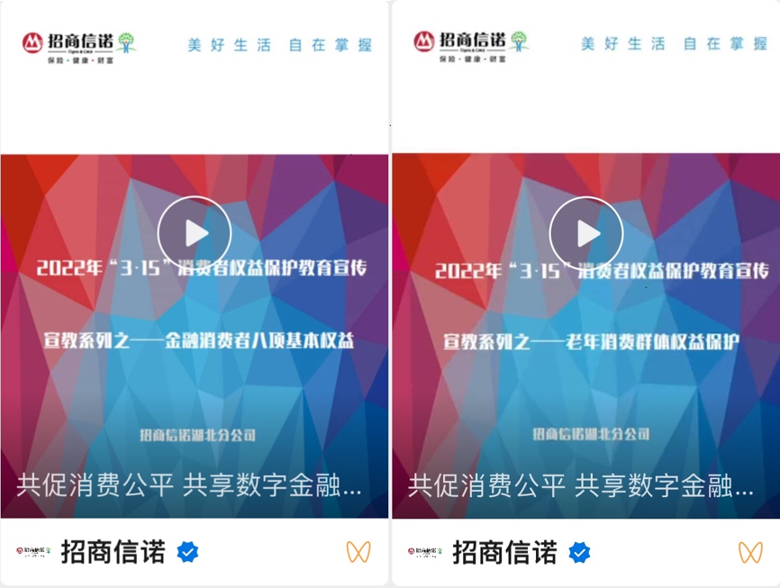 活动期间,湖北分公司原创小视频“金融消费者八项基本权益”及“老年消费群体权益保护”在官方微信视频号里进行发布,扩大金融知识教育宣传活动覆盖面。