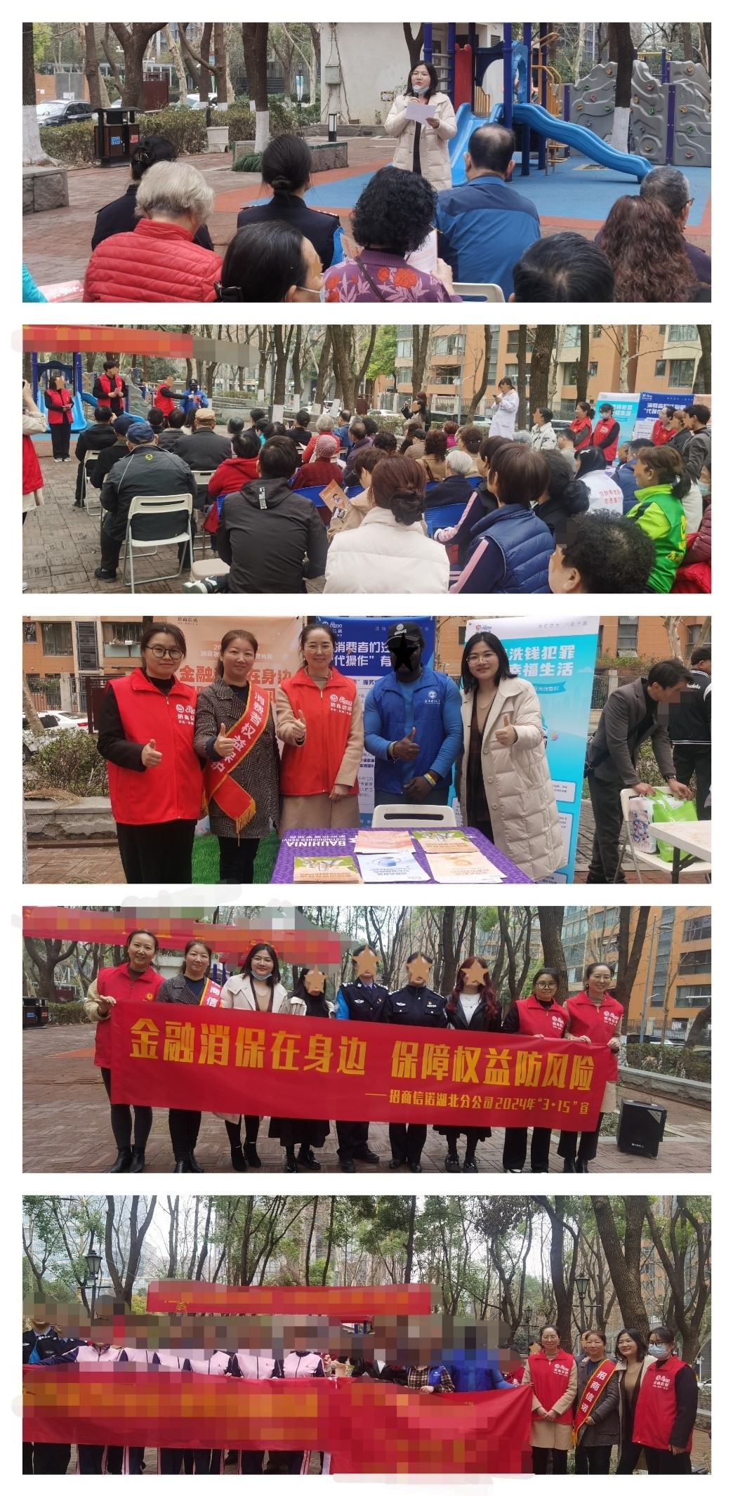 为切实维护金融消费者合法权益,提振金融消费信心,增强公众风险防范意识,共享美好生活,2024年3月13日上午,招商信诺人寿保险有限公司湖北分公司(以下简称“我司”)携手武汉天地总部经济集聚区综合党委、国华人寿湖北分公司、江岸区户政服务中心、武汉市第八医院等多家单位,在武汉天地御江苑中心花园向周边社区居民开展消费者权益保护宣传、反诈宣传等活动。