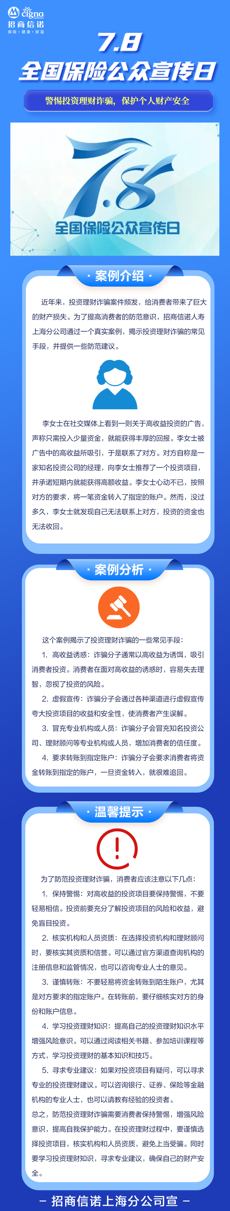 【7.8 全国保险公众宣传日】警惕投资理财诈骗,保护个人财产安全--招商信诺人寿上海分公司宣