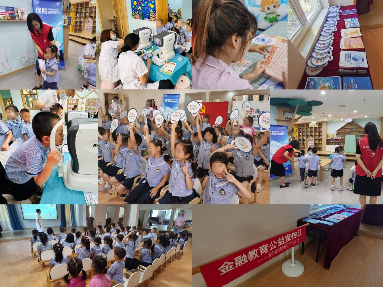 保险行业协会部署,在辽宁金融监管局的指导下,招商信诺辽宁分公司(以下简称“招商信诺”)积极响应辽宁省保险行业协会关于2024年“7.8全国保险公众宣传日”活动的部署要求,紧密围绕“保险,让每一步前行更有底气”的年度主题,将支部党建与金融教育紧密结合,在7月党的生日这个特别的月份里,发挥党建引领作用,携手兴齐眼科医院党支部,在沈水园丁园幼儿园为小朋友们举办了义诊服务活动,活动后支部党员和金融义务宣传员还为现场的老师医生们做了金融知识普及。此次活动旨在将党建活动和金融教育相结合,提高儿童眼健康意识,促进儿童健康成长,普及金融知识,开展保险消费者权益保护宣传。