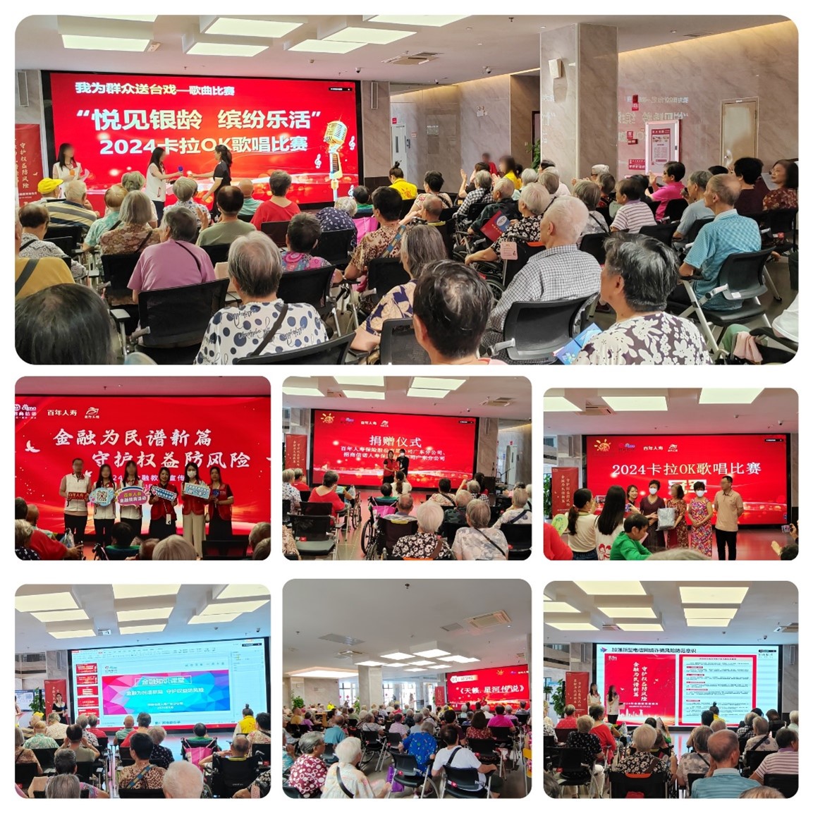 招商信诺广东分公司和百年人寿广东分公司消保宣讲团在比赛中场通过金融知识小课堂,为广州养老院老年群体普及金融消费者八项权益、普惠金融政策、防范电信网络诈骗、防范非法集资等重要金融知识,广州养老院老年群体认真听讲,积极参与互动,现场气氛热烈,掀起一波又一波的小高潮,广州养老院老年群体和工作人员对本次边歌唱比赛边学习金融知识的模式赞不绝口。