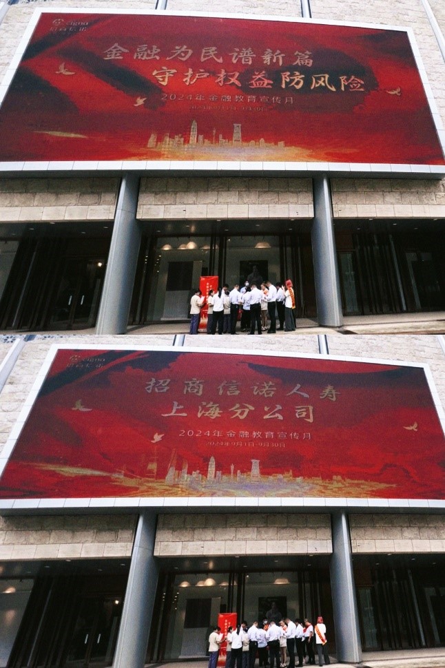 更值得关注的是,为更好地扩大金融教育宣传力度,此次招商信诺上海分公司在丁香国际中心的户外电子大屏上,投放了自制的宣传视频。它将在9月中下旬每日随机播放2次以上。我们相信通过此次活动的宣传力度,不仅可以扩大覆盖,而且内容深入、形式多样,能够给公众留下深刻印象。这种力度的体现,确保了宣教效果的最大化。