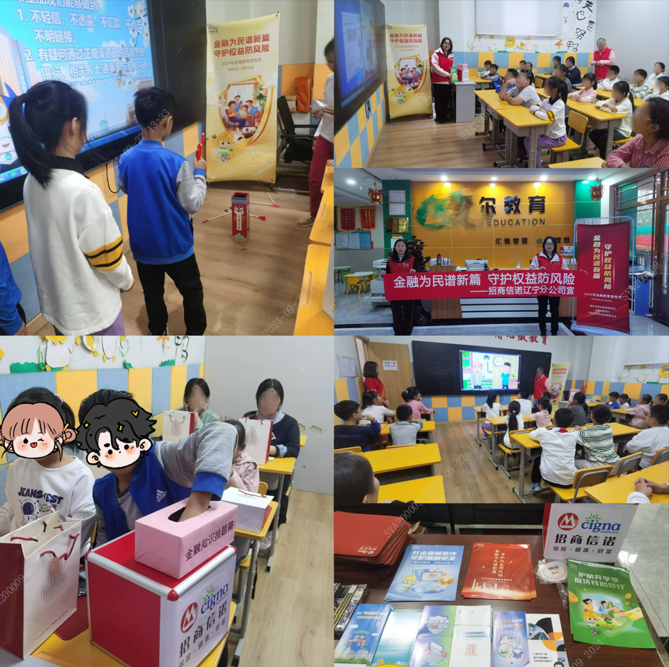 在9月金融教育宣传月期间,招商信诺辽宁分公司(以下简称“我公司”)通过丰富多彩的活动形式,致力于提升青少年对金融知识的兴趣和认识。9月20日,我公司金融宣传公益小队走进达尔教育机构,为孩子们带去了生动的金融知识课堂。我公司利用达尔教育机构的教学视频设备,在课堂上循环播放辽宁金融监管局统一下发的“金融消费者八项基本权利”和“金融百科系列”动画片,并在视频播放结束后通过投壶游戏互动吸引孩子们回答金融常识问题。