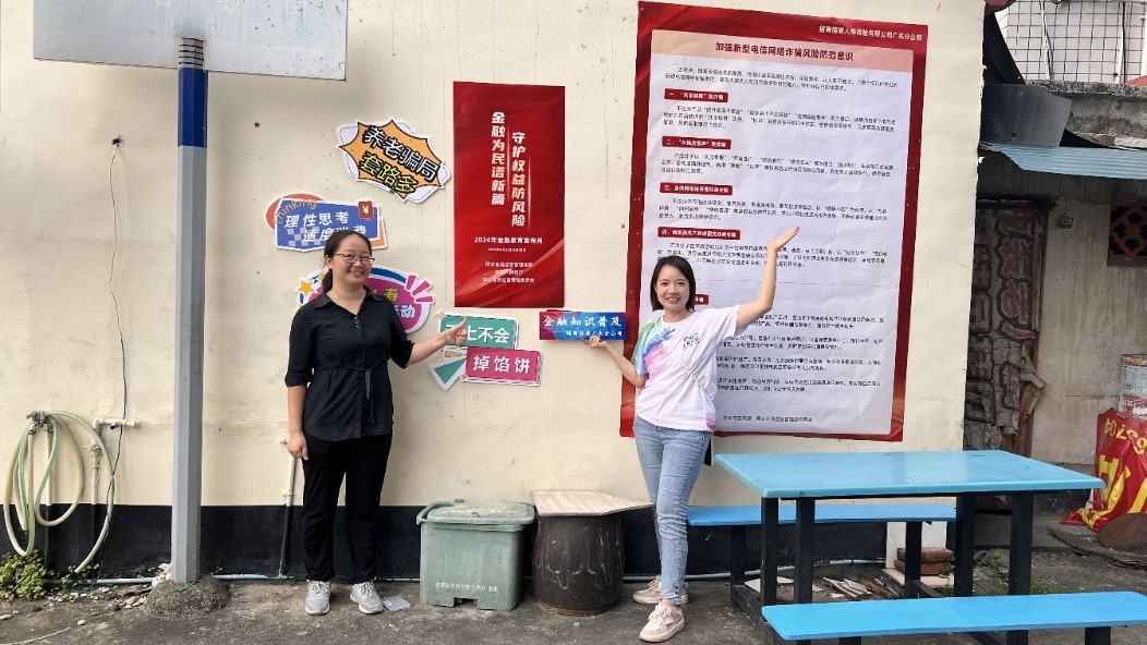 招商信诺广东分公司下沉教育宣传重心,落实“我为群众解难题、办实事”,金融知识宣讲团在花都鸭一村和增城畲族村,充分利用农村墙面宣传阵地,为村布置 “金融消保知识墙”,用色彩丰富、生动的画面和实用的知识“粉刷”墙面,为农村增添一道亮丽的“金融知识风景线”,提升村民防诈“免疫力”,将金融知识送到田间地头。