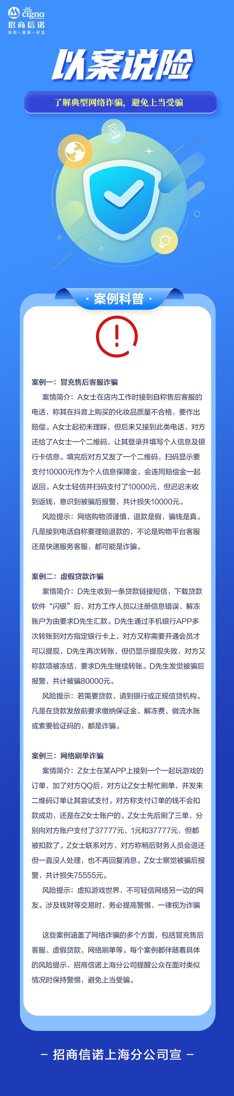 【以案说险】了解典型网络诈骗,避免上当受骗——招商信诺人寿保险有限公司上海分公司宣
