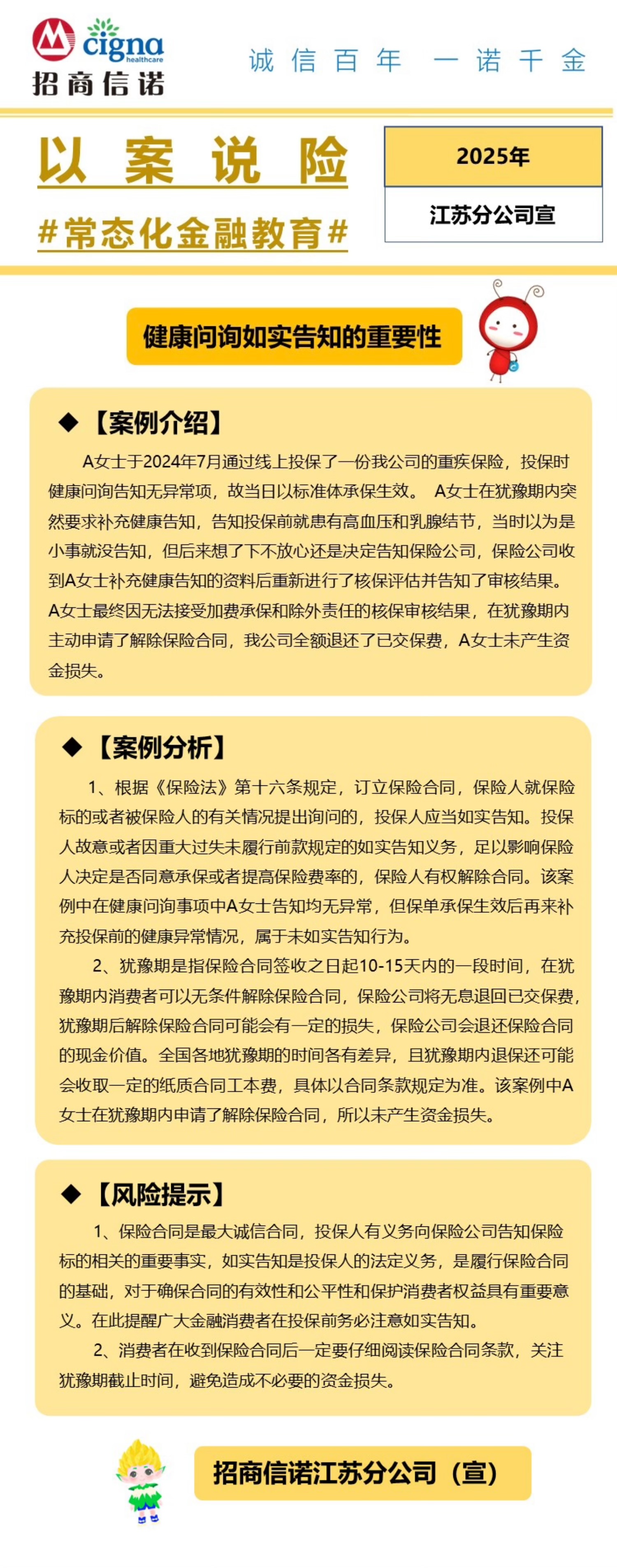 【以案说险】 健康问询如实告知的重要性——招商信诺江苏分公司宣