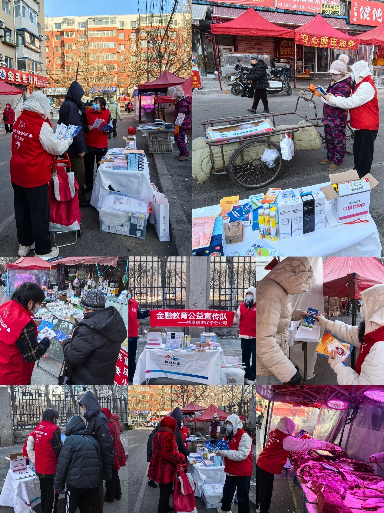 寒冬腊月,当人们都在忙着购置年货、抵御严寒的时候,市集上出现了一个特殊的“摊位”,吸引了逛市集的市民。原来,招商信诺辽宁分公司金融教育公益宣传队不惧凛冽的寒风,开展金融教育宣传进市集活动。