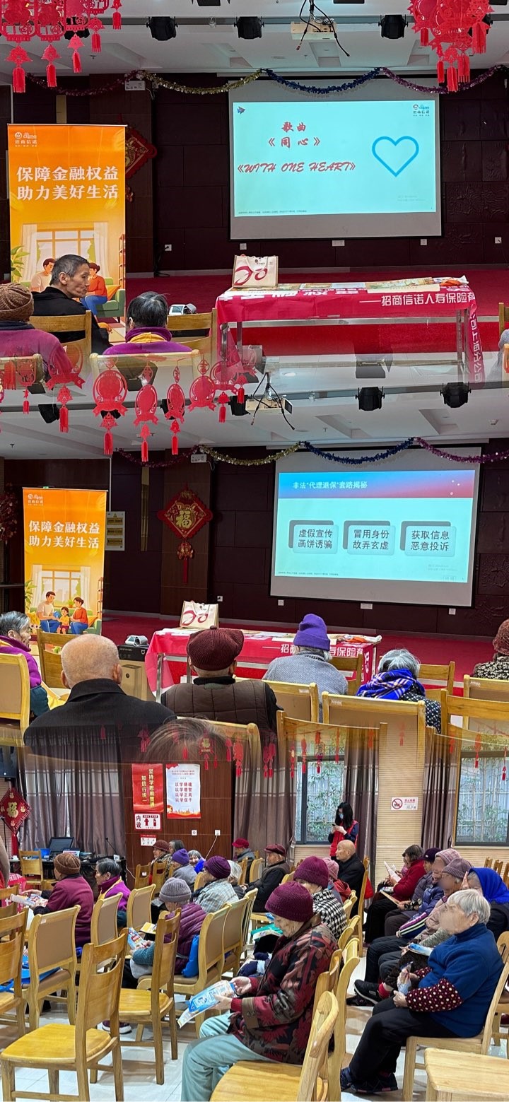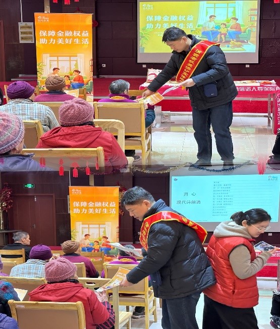 3月5日上午,我司志愿者们专程前往南翔镇福利院,为乡镇的老人们开设金融宣教讲座。讲解常见的金融诈骗手段、远离“非法代理退保”、个人征信保护等内容。通过参与活动,老年人对金融知识有了更深入的了解,能够识别常见的金融诈骗手段,提高了自我保护能力。活动通过生动的案例和讲解,让老年人深刻认识到金融诈骗的危害性,增强了他们的风险防范意识。我们深感此次活动的开展不仅帮助了老年人,也增强了社区与老年人之间的互动和交流,促进了社区的和谐与稳定。