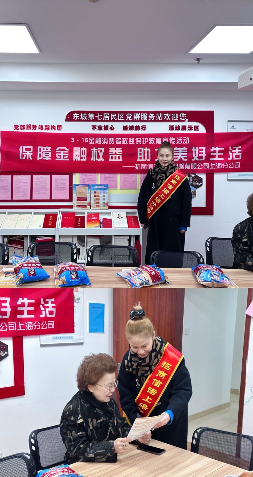 “315”消费者权益日旨在提高消费者的权益保护意识,促进市场环境的公平与诚信。而“38·妇女节”则是全球女性争取平等权利和权益的重要纪念日,强调女性的独立、自主与力量。此次,招商信诺上海分公司消保部的工作人员们特意将两者结合,在妇女节来临之际,3月7日上午走进东城七居委,为居民们开展金融宣教活动,这不仅能够提升广大消费者对金融权益的保护意识,还能够特别关注到女性在金融领域的权益保护问题,具有双重意义。