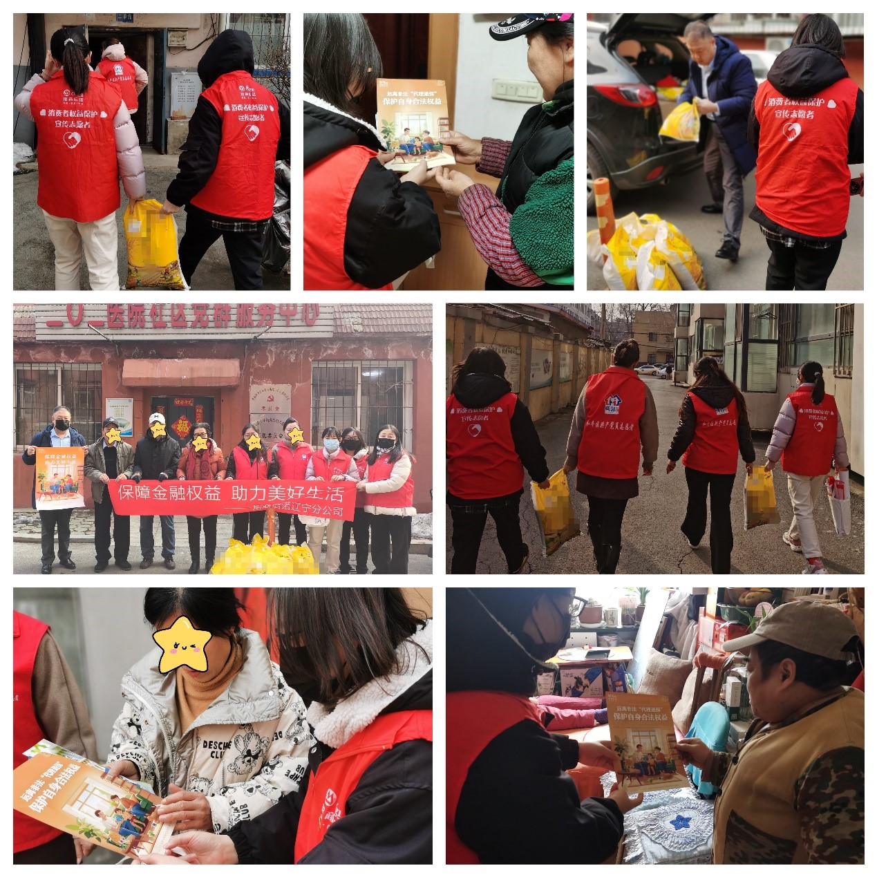 此外,我公司还积极践行社会责任,在二〇二医院社区党群服务中心志愿者的陪同下,将一袋袋爱心大米送到低保户和残疾人家中,并与居民亲切交流,了解他们的生活状况和实际需求,落实为民办实事举措,增强人民群众对金融服务的可得性和获得感。