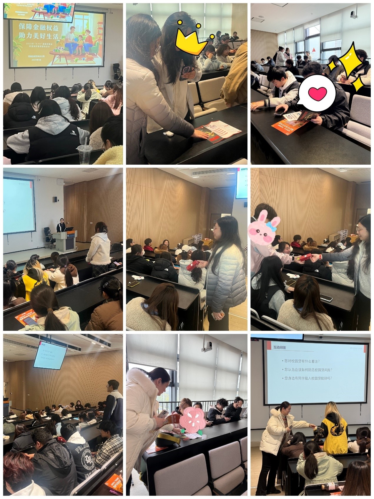 人寿保险有限公司苏州分公司联合招商银行苏州分行、招商银行信用卡中心苏州分中心,走进苏州工业园区服务外包职业学院,开展了一场以“保障金融权益,助力美好生活”为主题的金融知识宣传教育活动。活动通过真实案例剖析、互动问答和情景模拟等形式,深入揭示校园贷的危害,引导学生树立理性消费观念,筑牢金融安全意识防线。为增强宣传教育效果,在互动“情景模拟”环节,学生通过角色扮演亲身体验诈骗话术,学习如何识别虚假宣传、保护个人信息,现场气氛热烈,学生直呼“实用又深刻”,参与互动的同学通过答题获得互动小礼品,在轻松氛围中掌握金融常识。