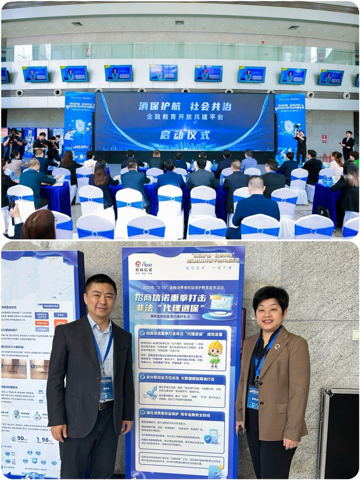 2025年3月13日,招商信诺总公司消费者权益保护部陈琦总与深圳分公司唐春艳总共同参加深圳市银行业保险业消费者权益保护促进会和深圳广电集团联合主办“消保护航•社会共治”金融教育开放平台共建活动。活动积极践行“以人民为中心”价值取向,响应金融教育工作部署,开展2025年“3·15”金融消费者权益保护教育宣传活动,共建“消保护航·社会共治”金融教育开放平台,切实提升社会公众金融素养和风险防范能力。