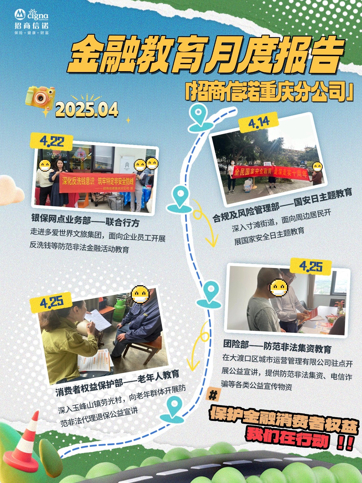 招商信诺重庆分公司持续开展金融知识教育公益行动,以“活动金融课堂”为载体,深入社区、街道、企业等场所,切实提升群众金融素养。