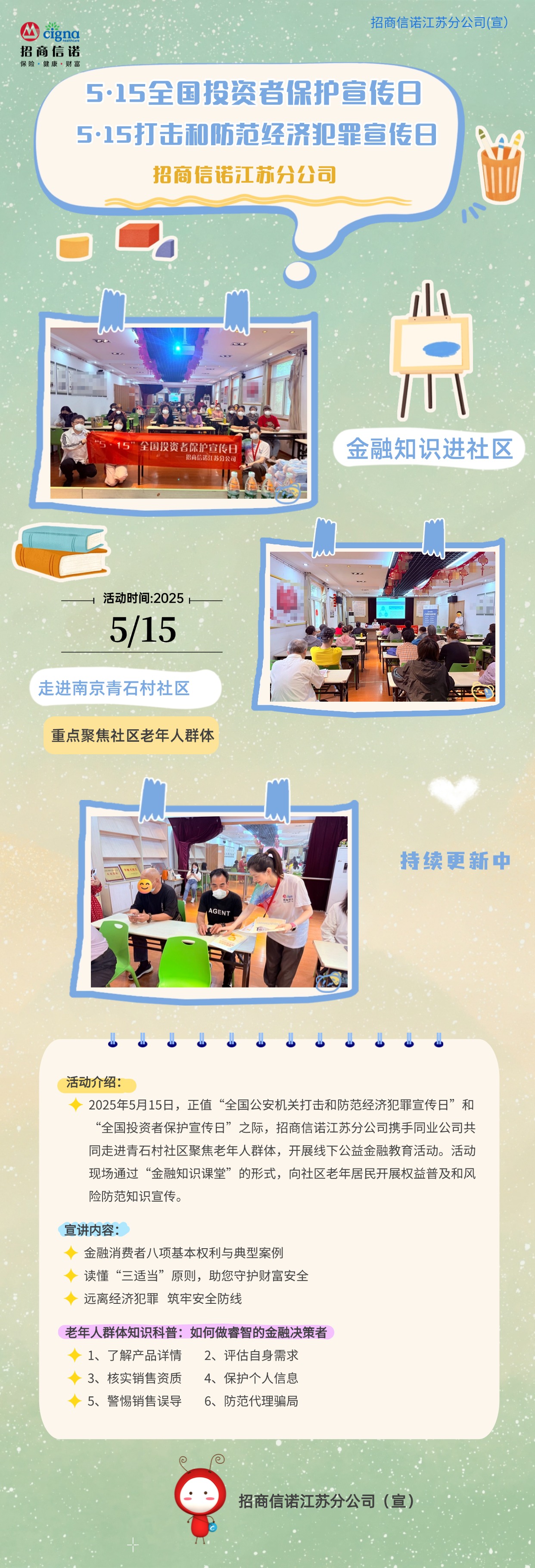 5·15全国投资者保护宣传日 |【活动报道】招商信诺江苏分公司积极开展2025年“5·15全国投资者保护宣传日”活动