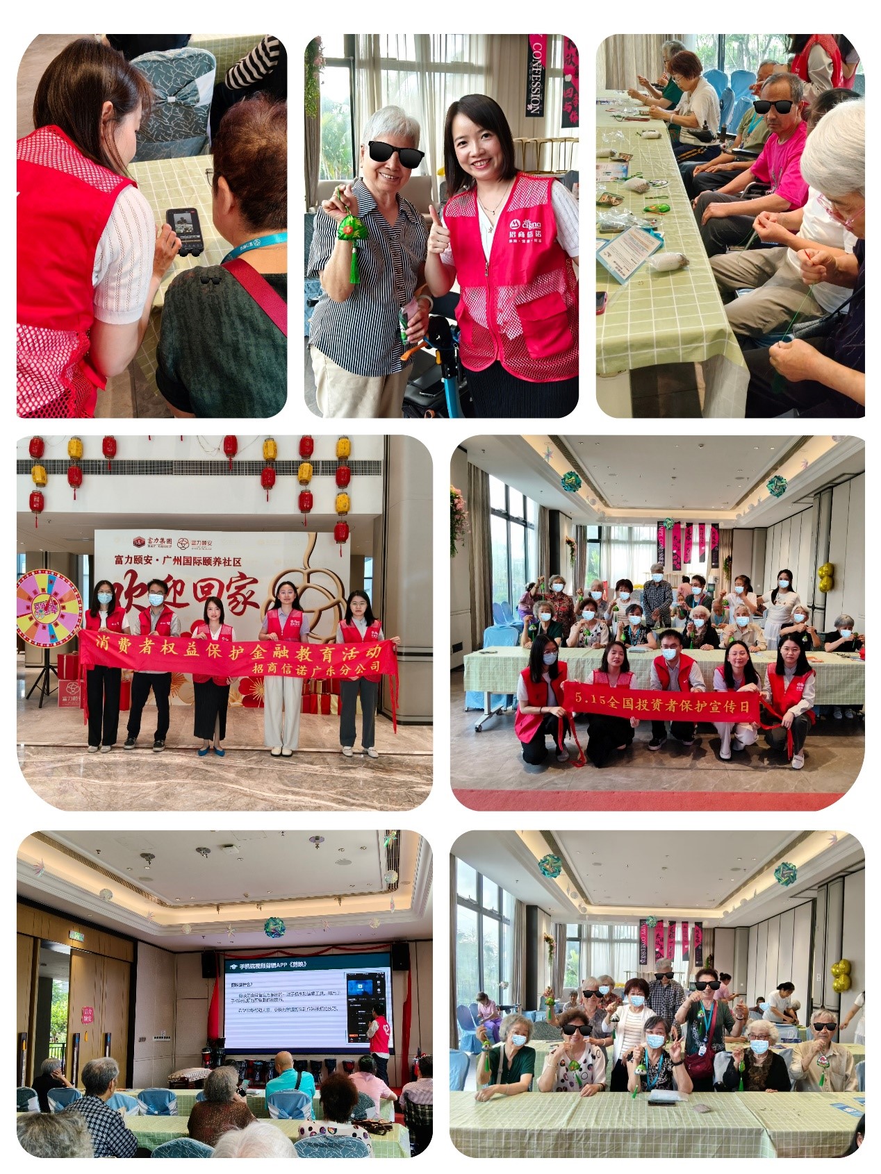 为深入贯彻落实尊老敬老的传统美德,弘扬中华民族的养老文化,积极倡导“爱老、敬老、尊老、助老”的良好风气。 5月20日,招商信诺广东分公司联合大家人寿广东分公司,深耕银发群体权益保护,聚焦老年人和残疾人金融安全需求,组成金融教育宣讲团,在广州市番禺区富力颐安社区开展“银龄老人防诈骗,金融守护保权益”的活动,旨在通过“端午节日传统手工+银龄课堂”的形式,提升特殊群体的金融素养和风险防范意识,为他们的晚年生活保驾护航。