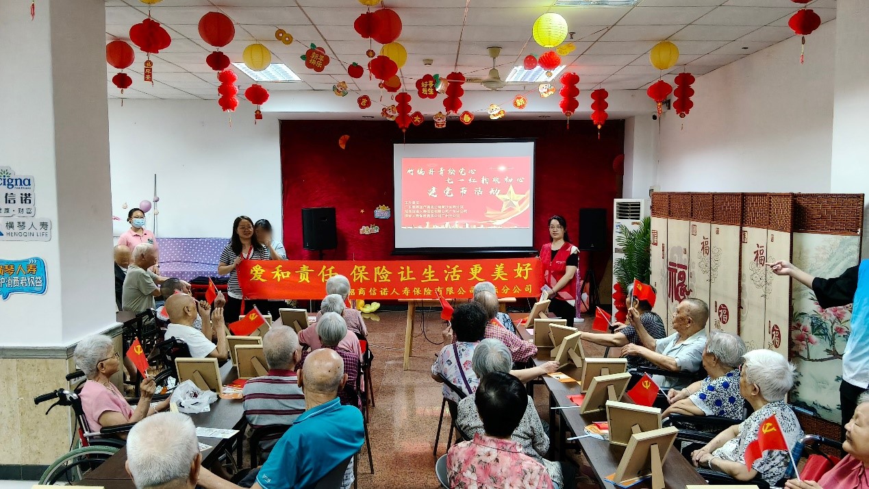 招商信诺广东分公司积极走进黄沙养老院和广州养老院,金融宣讲团成员化身文艺使者,通过非遗竹编、金箔画、唱响红歌形式,为养老院长者们开启一场别开生面的