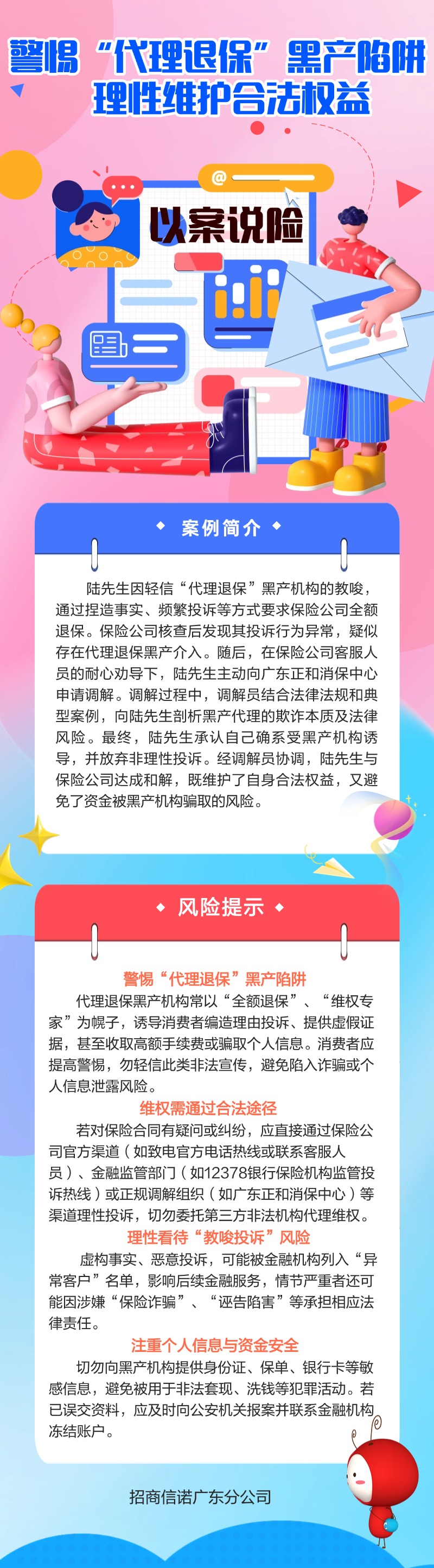 警惕代理退保黑产陷阱,理性维权护权益-招商信诺广东分公司宣