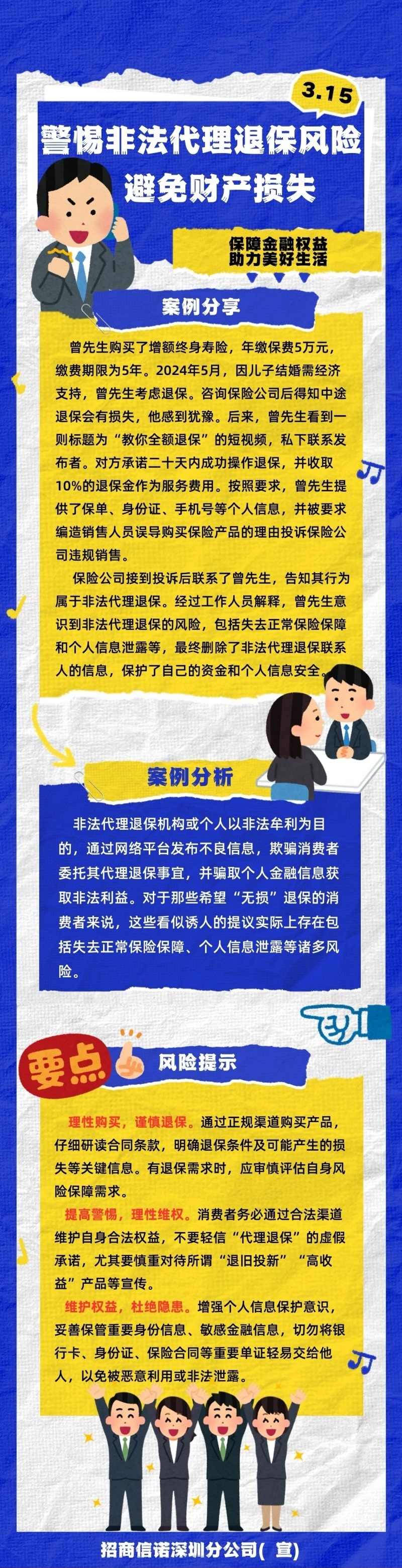 【风险提示】:警惕非法代理退保风险 避免财产损失-招商信诺深圳分公司宣