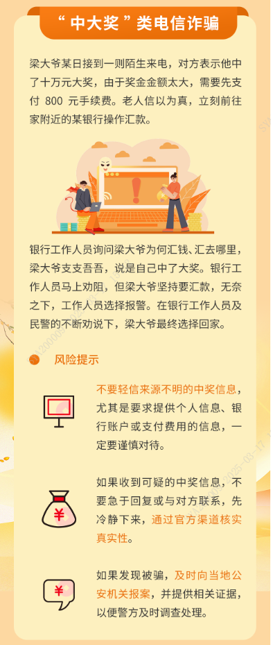 招商信诺辽宁分公司宣:金融知识科普(四)【风险提示】电诈手段大盘点专坑老年人的“千层”套路之二”中大奖”类电信诈骗
