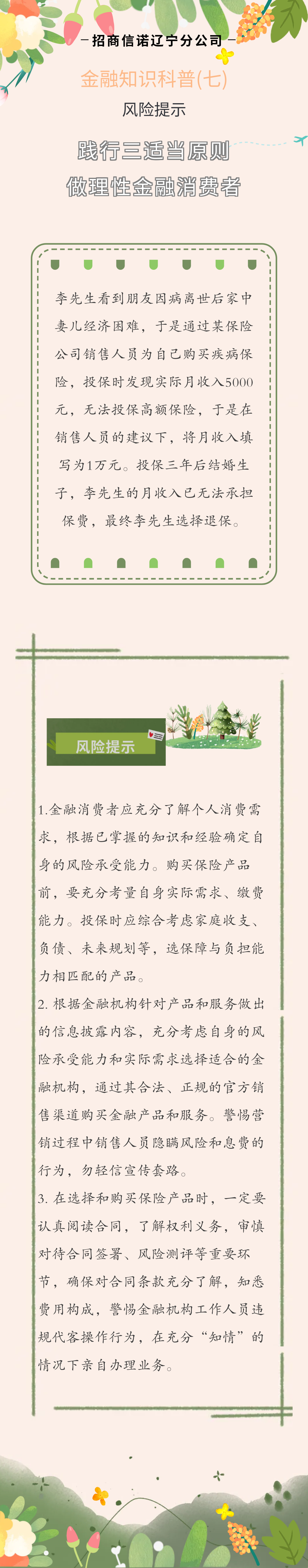 招商信诺辽宁分公司宣 金融知识科普(七)原创风险提示:践行三适当原则 做理性金融消费者