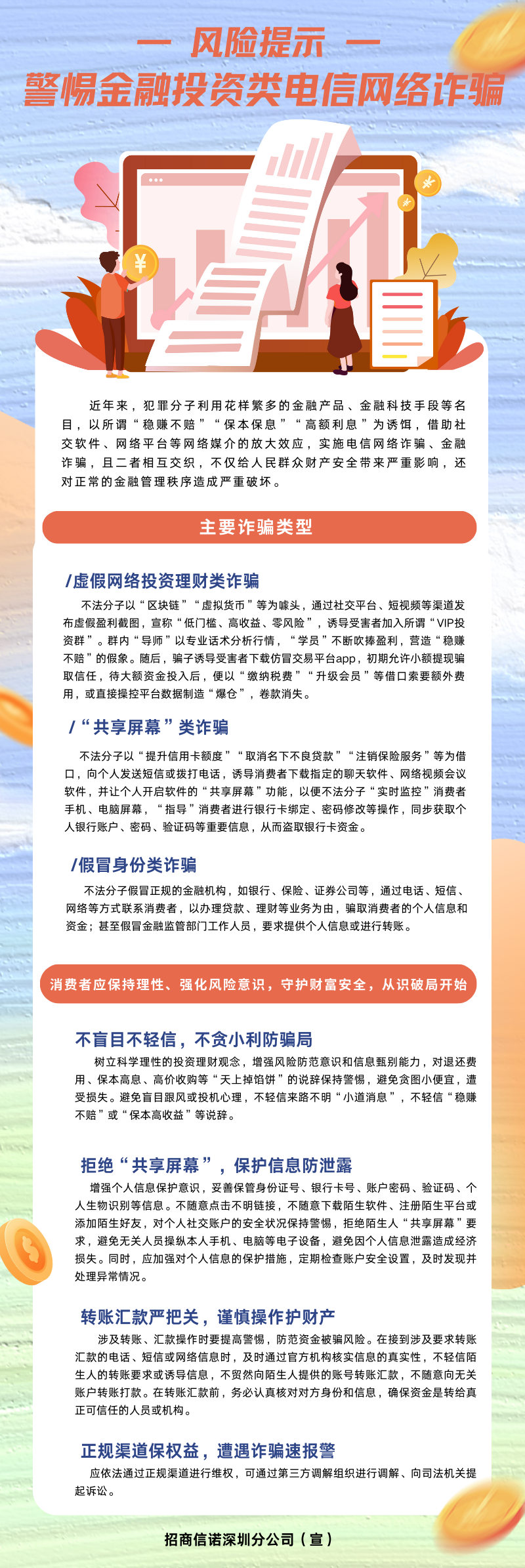 【风险提示】警惕金融投资类电信网络诈骗-招商信诺深圳分公司宣