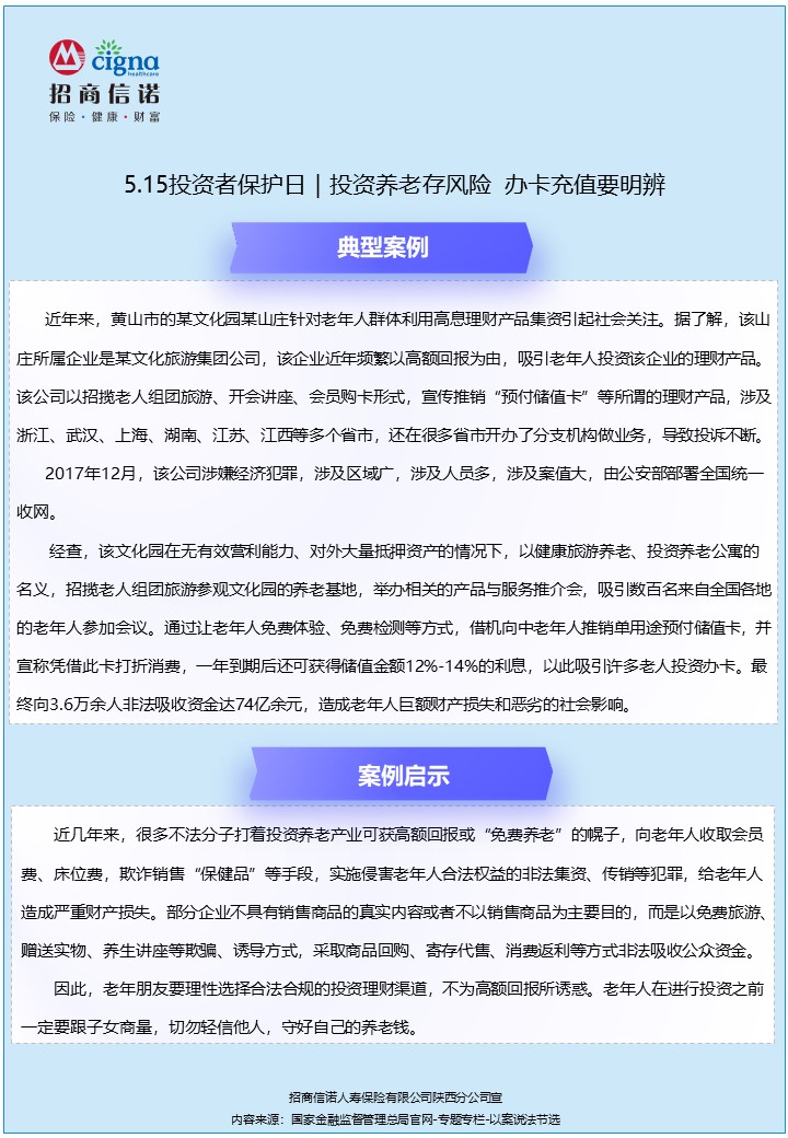 5.15投资者保护日|投资养老存风险 办卡充值要明辨-招商信诺陕西分公司宣