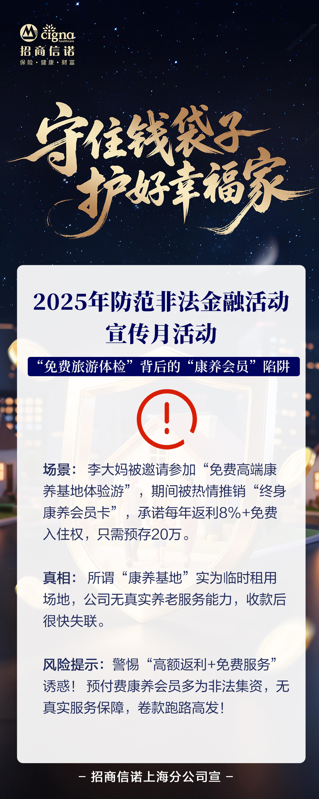 【2025年防范非法金融宣传月】“免费旅游体检”背后的“健康会员”陷阱——招商信诺上海分公司(宣)