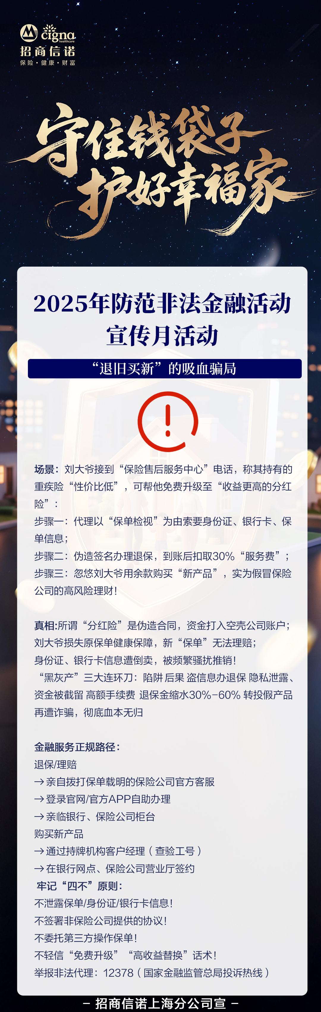 【2025年防范非法金融宣传月】“退旧买新”的吸血骗局——招商信诺上海分公司(宣)