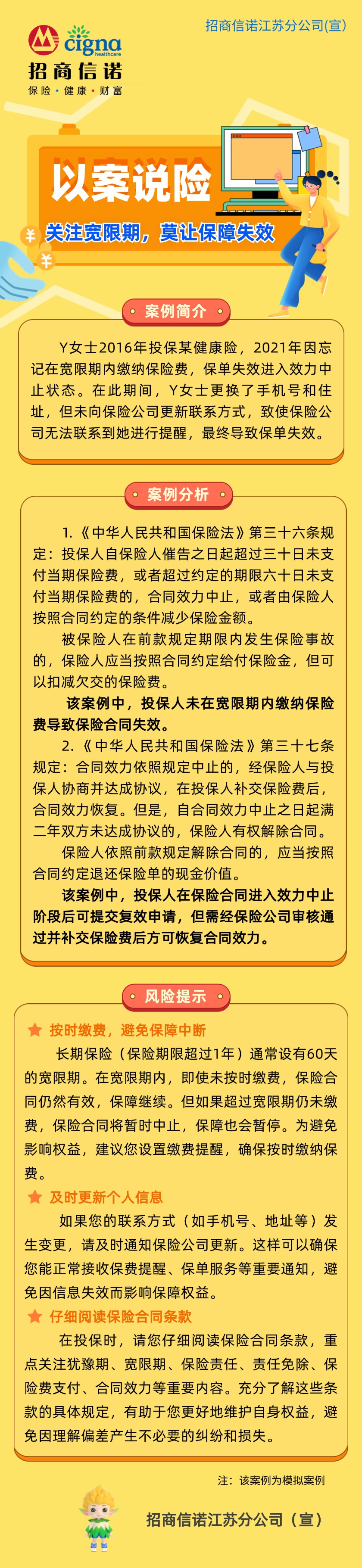 【以案说险】关注宽限期,莫让保障失效——招商信诺江苏分公司宣