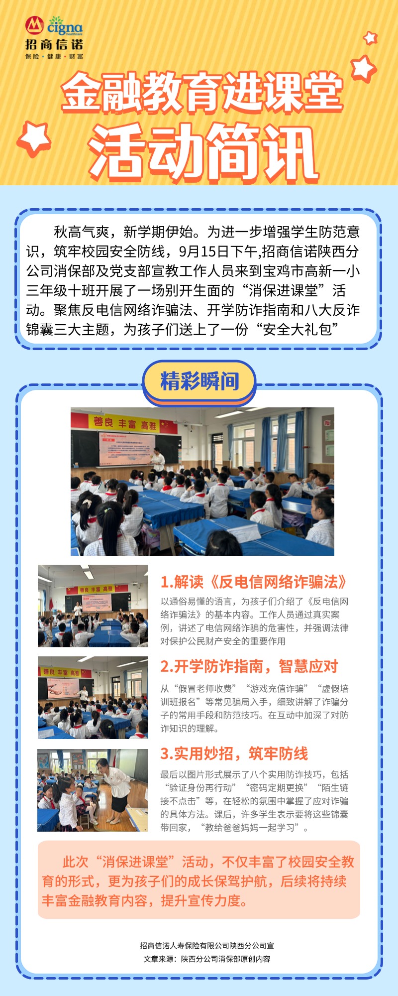 【金融教育简讯】招商信诺陕西分公司开展“金融教育进课堂”活动