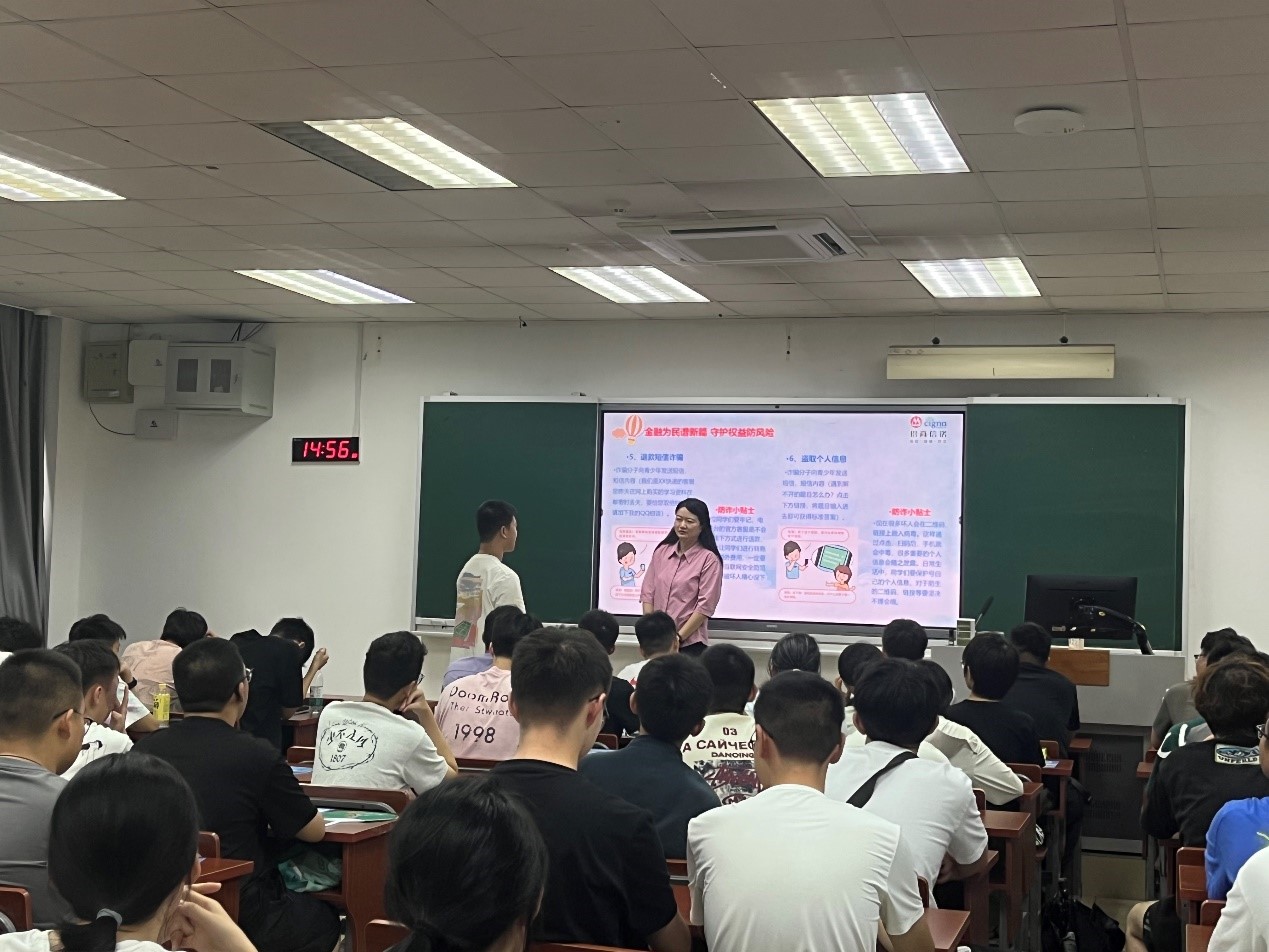 年金融教育宣传周活动的通知》文件精神,切实提升高校新生群体防范诈骗的意识和能力,筑牢校园安全防线。招商信诺苏州分公司与招商银行苏州分行于2025年9月9日下午,在苏州大学独墅湖校区纳米学院联合组织开展了一场以“保障金融权益 助力美好生活”为主题的专场宣传活动。本次活动面向百余名大一新生,内容扎实、形式严谨,取得了良好的教育宣传效果。