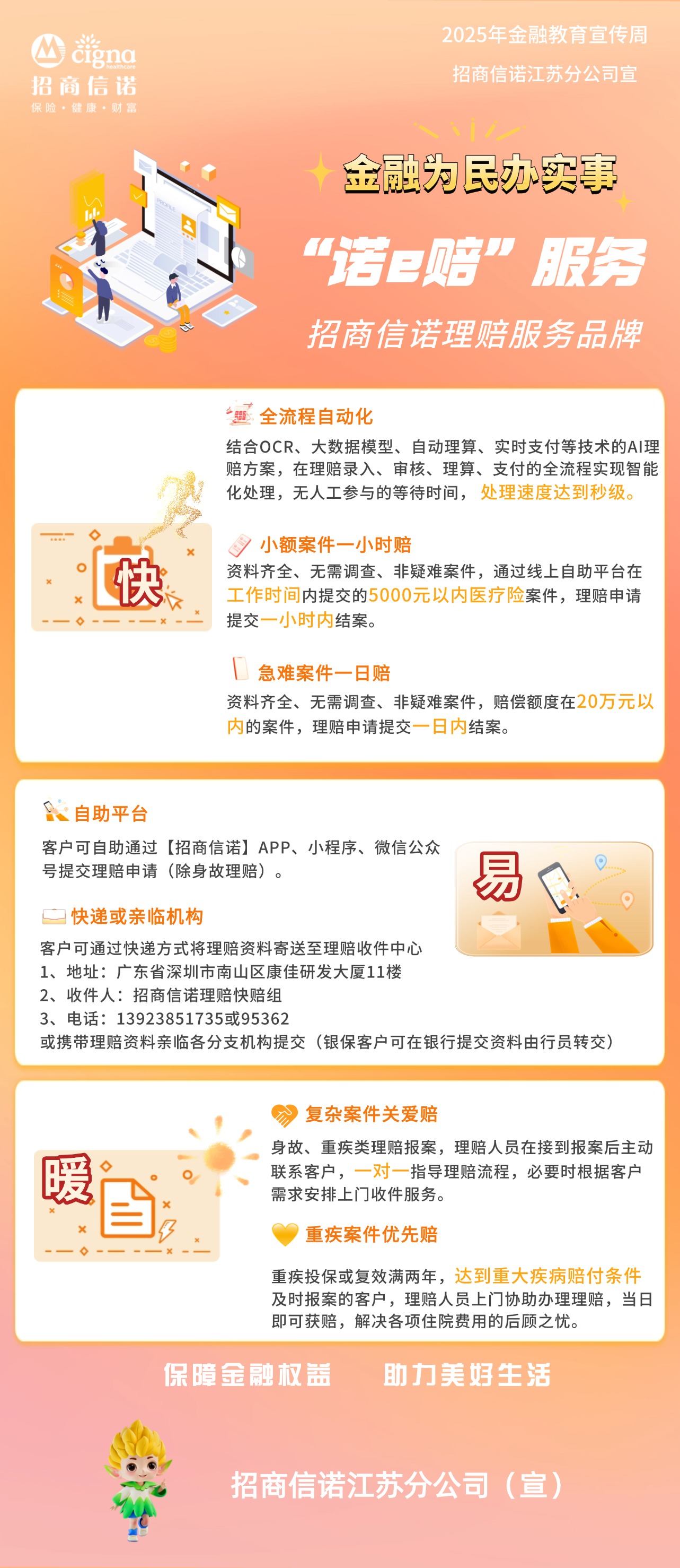 【金融为民办实事】招商信诺推出“诺e赔”理赔服务——招商信诺江苏分公司宣