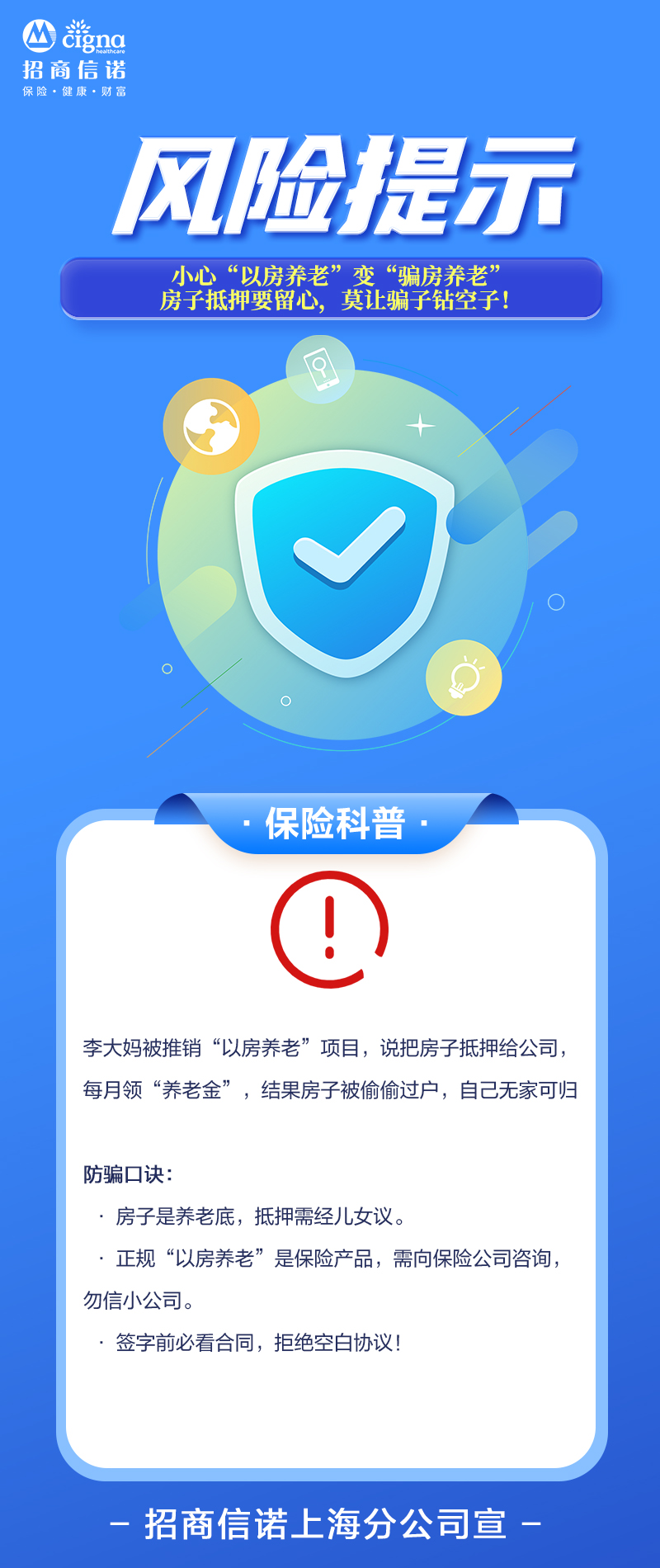 【风险提示】小心“以房养老”变“骗房养老”——房子抵押要留心,莫让骗子钻空子!——招商信诺上海分公司(宣)