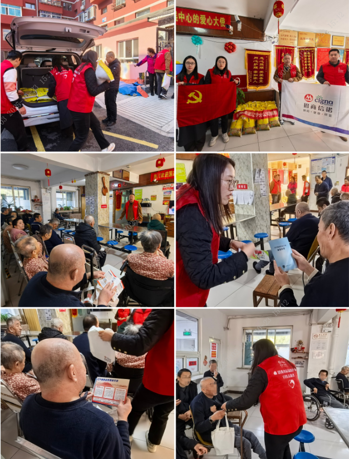 岁岁重阳,今又重阳。在重阳节这个承载着尊老、敬老传统的节日来临之际,招商信诺辽宁分公司(以下简称我司)党员志愿者带领公益小队,专程前往沈阳市大东区夕阳红养老服务中心,以“金融守护+爱心捐赠”的双轨行动,为院内老人与工作人员送上一份特殊的节日关怀。
