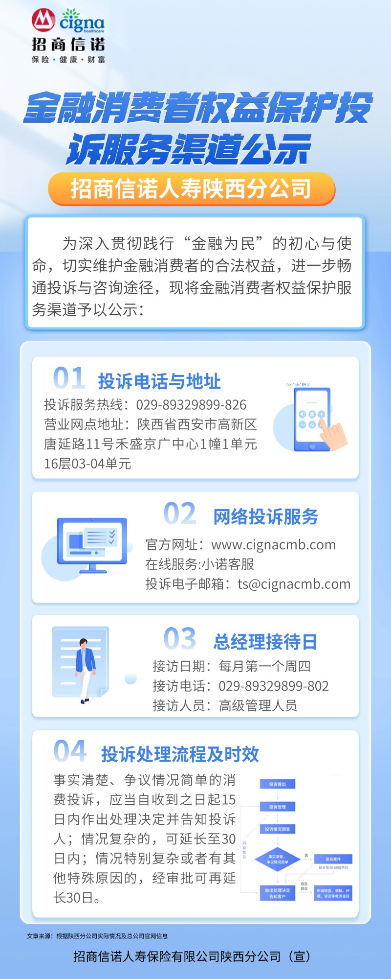 金融消费者权益保护投诉服务渠道公示【招商信诺陕西分公司】