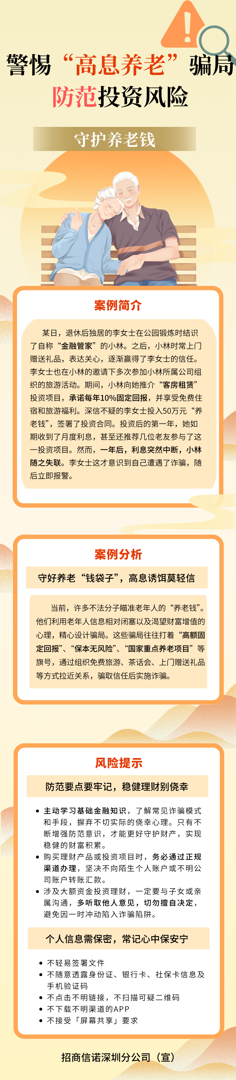 【守护养老钱】警惕“高息养老”骗局 防范投资风险-招商信诺深圳分公司