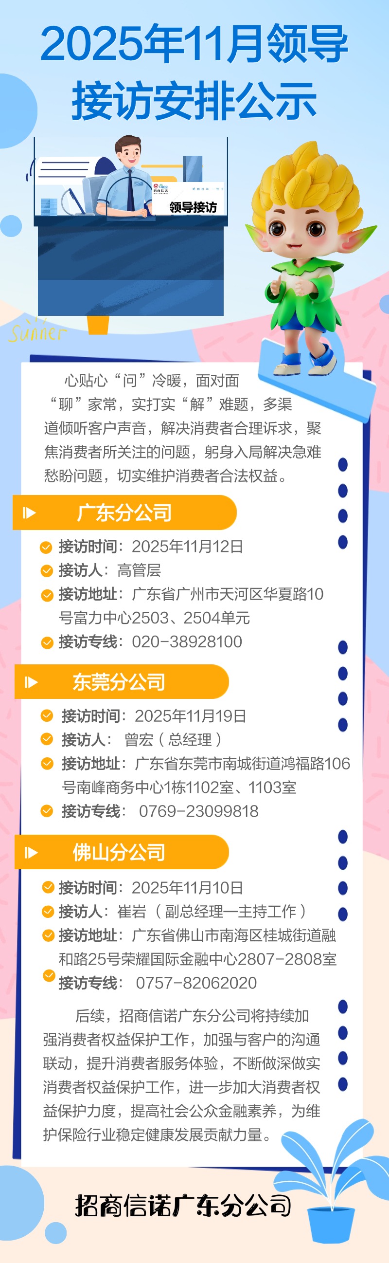 2025年11月广东分公司领导接访安排公示【招商信诺广东分公司】