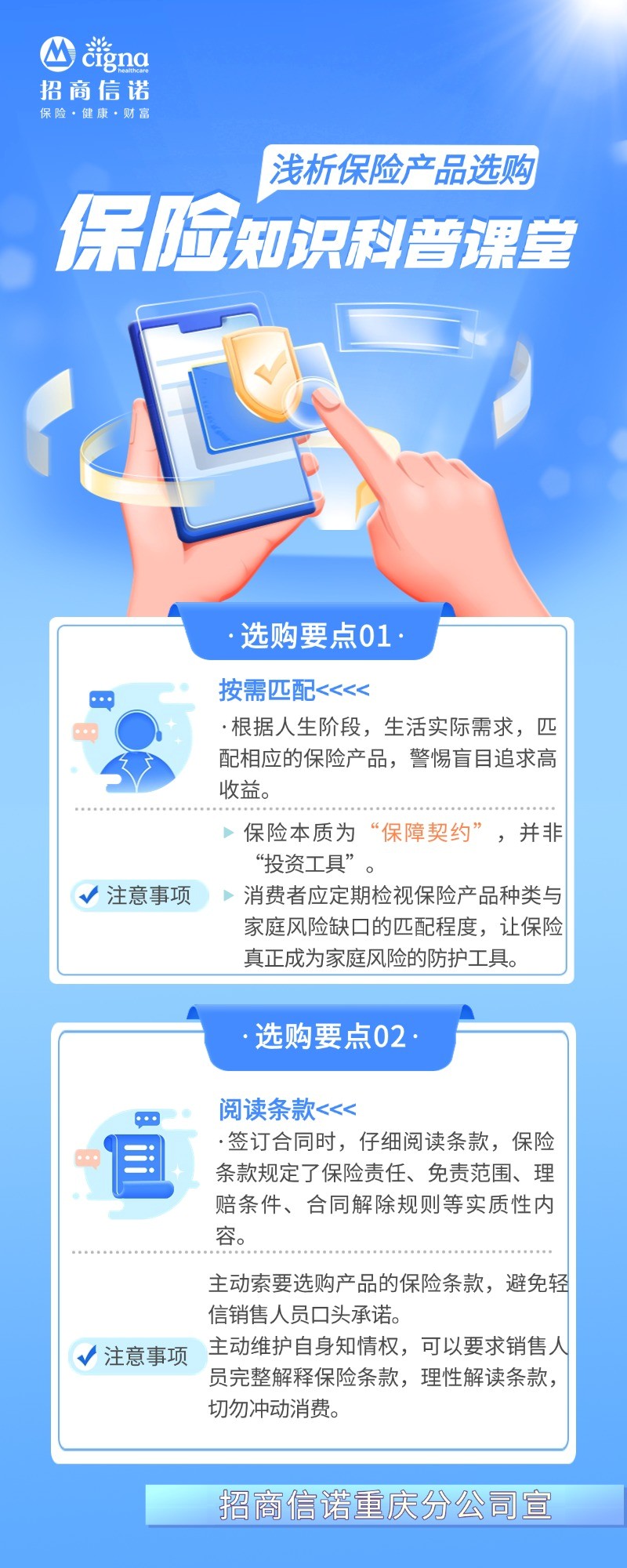 保险产品选购有技巧,招商信诺重庆分公司提醒您选购产品时关注自身实际需求、仔细阅读保险条款。