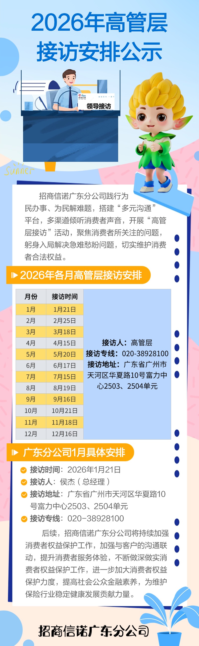 广东分公司2026年领导接访安排公示【招商信诺广东分公司】
