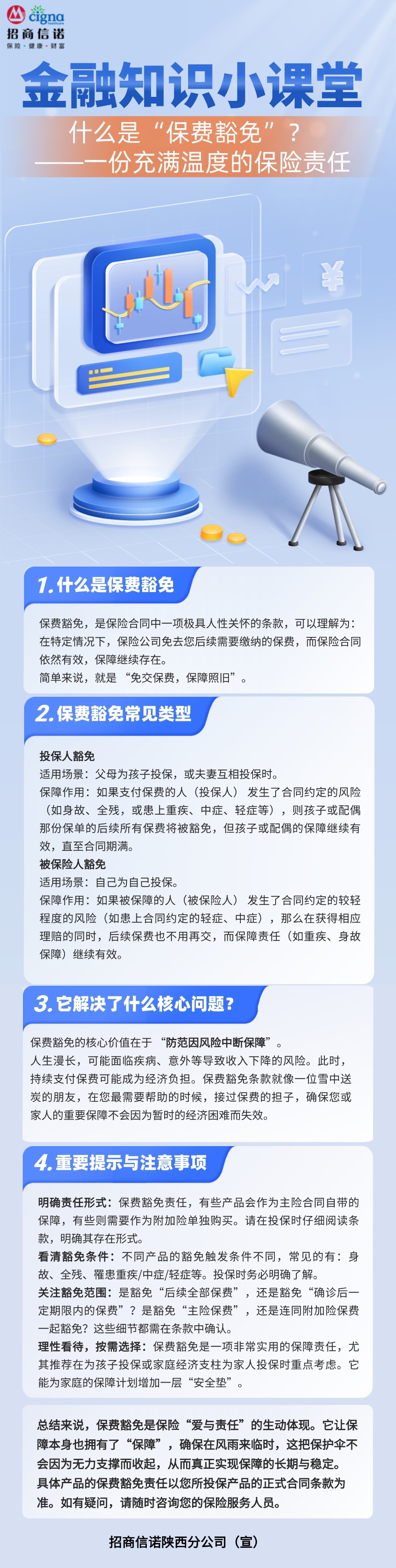 【金融知识普及】什么是保费豁免——招商信诺陕西分公司