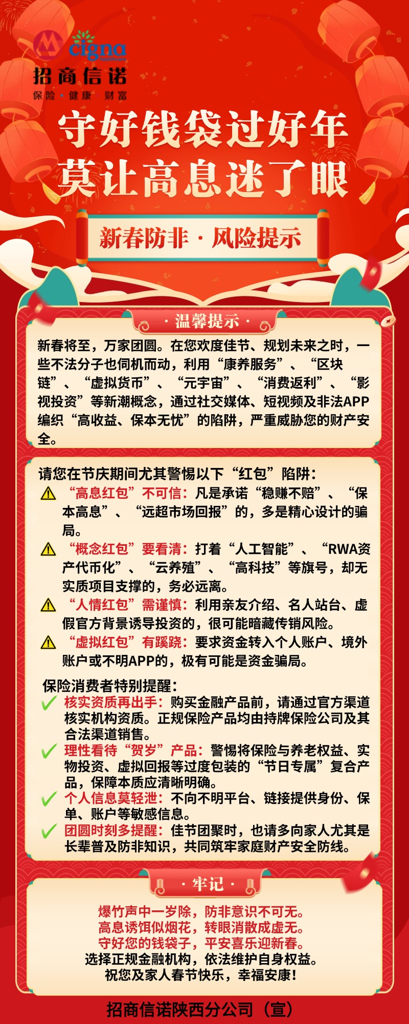 【风险提示】新春防非风险提示:守好钱袋过好年,莫让高息迷了眼——招商信诺陕西分公司