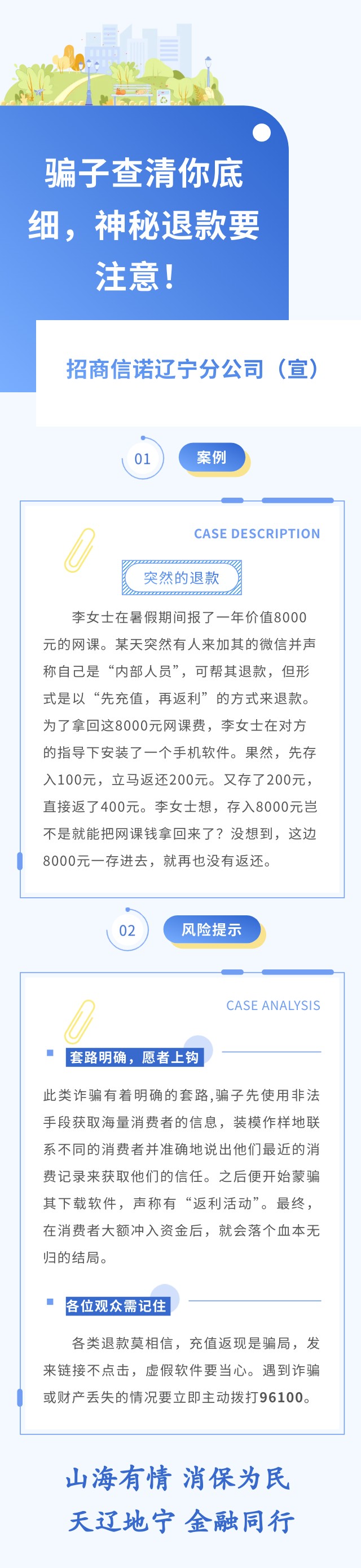 【风险提示】骗子查清你底细 神秘退款要注意【招商信诺辽宁分公司】
