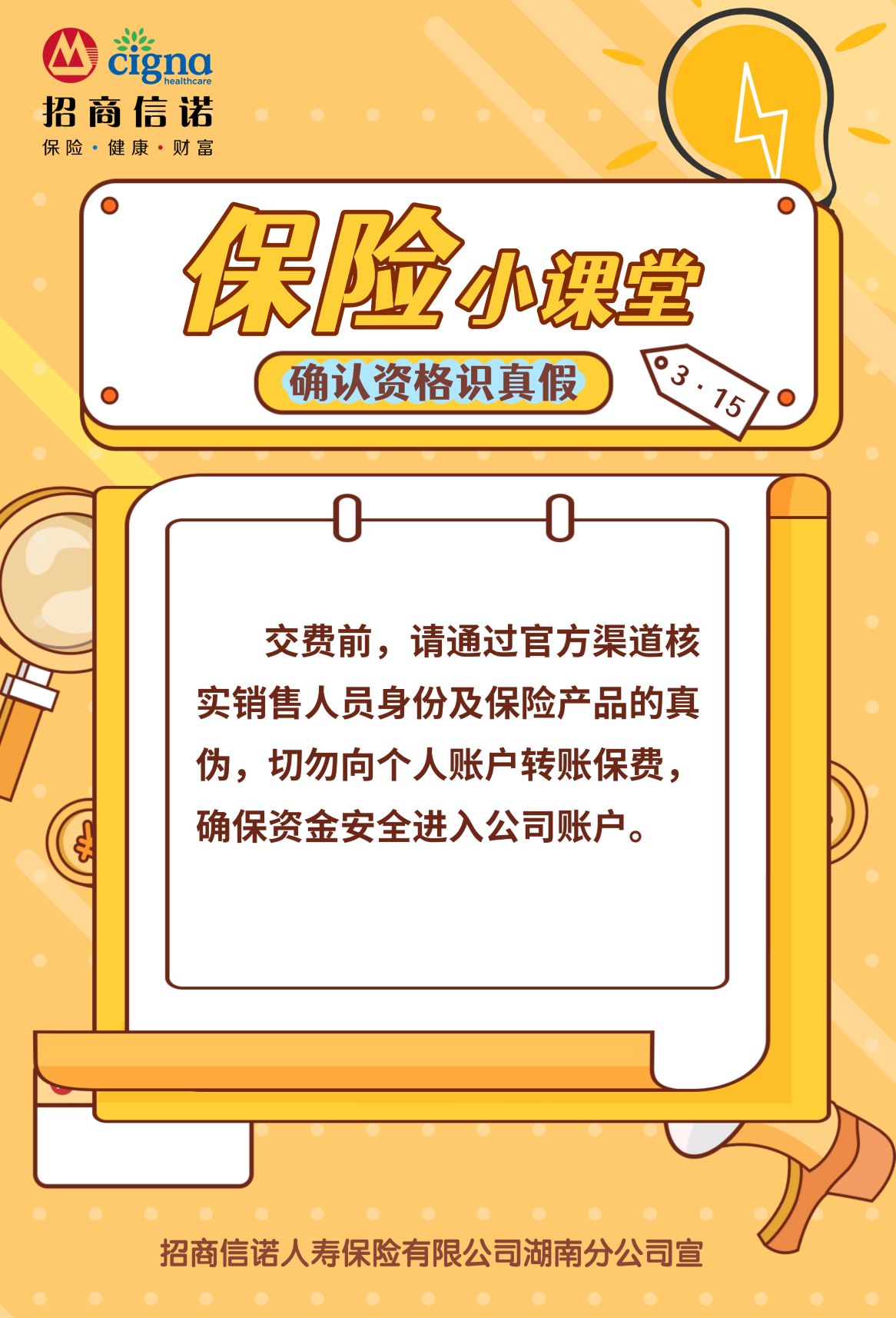 【保险小讲堂】确认资格识真假——招商信诺湖南分公司