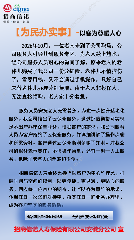【为民办实事】-以客为尊暖人心——招商信诺安徽分公司