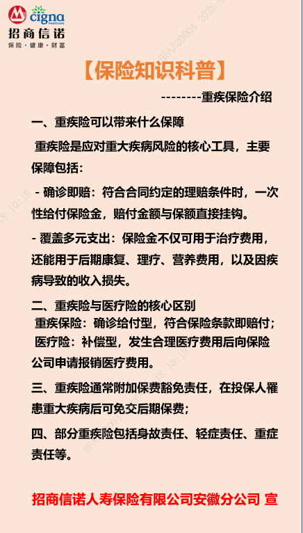 保险知识科普-重疾保险介绍【招商信诺安徽分公司】