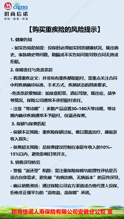 购买重疾险的风险提示【招商信诺安徽分公司】