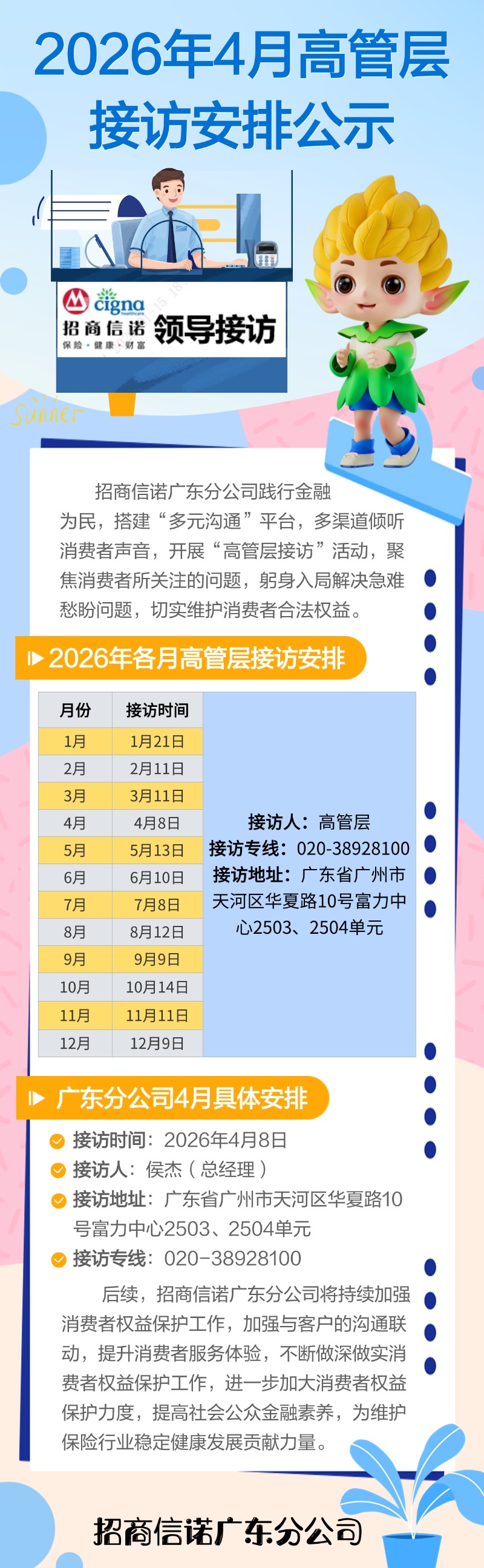 广东分公司2026年4月高管层接访安排公示【招商信诺广东分公司】